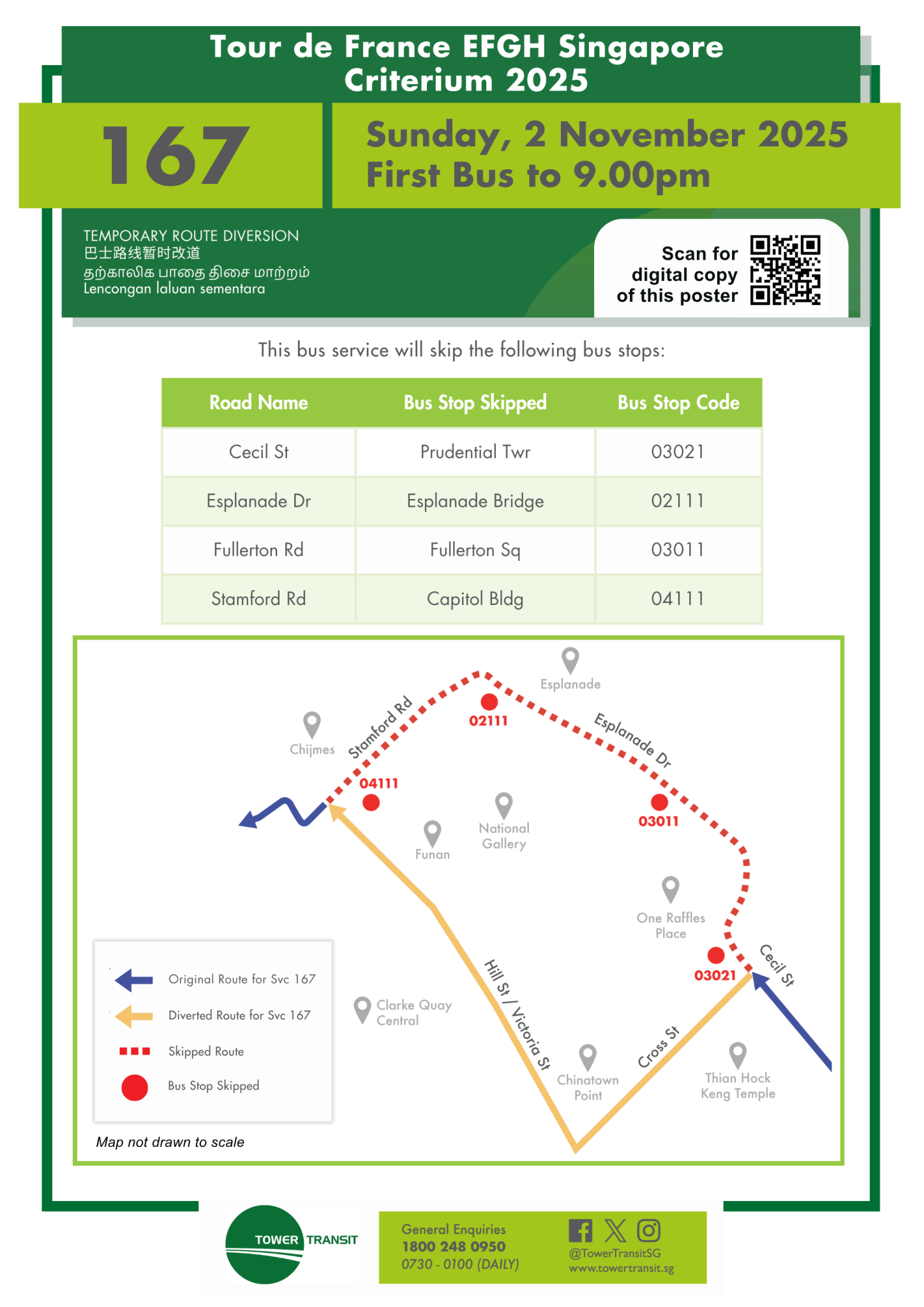 | Bus Stops Skipped for Tour de France EFGH Singapore Criterium 2025 Sunday, 2 November 2025 First Bus – 9:00pm |