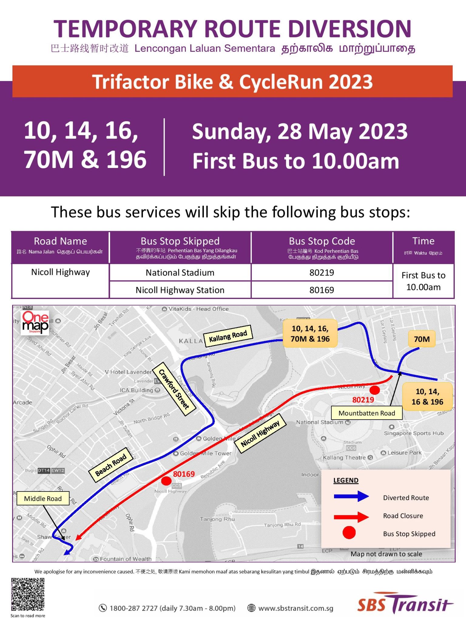 | Bus Stops Skipped for Trifactor Bike & CycleRun 2023 Sunday, 28 May 2023 First Bus – 10:00am |