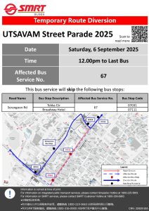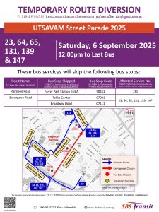 Road closures for UTSAVAM Street Parade 2025 will affect bus services plying along Serangoon Road.