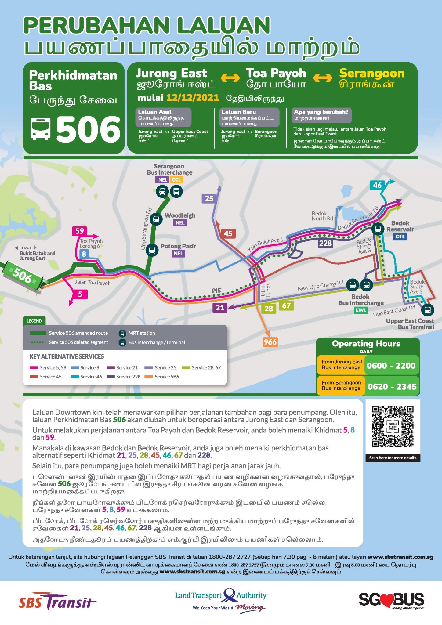 | 506 | Jurong East ↔ Upper East Coast | Jurong East ↔ Serangoon |