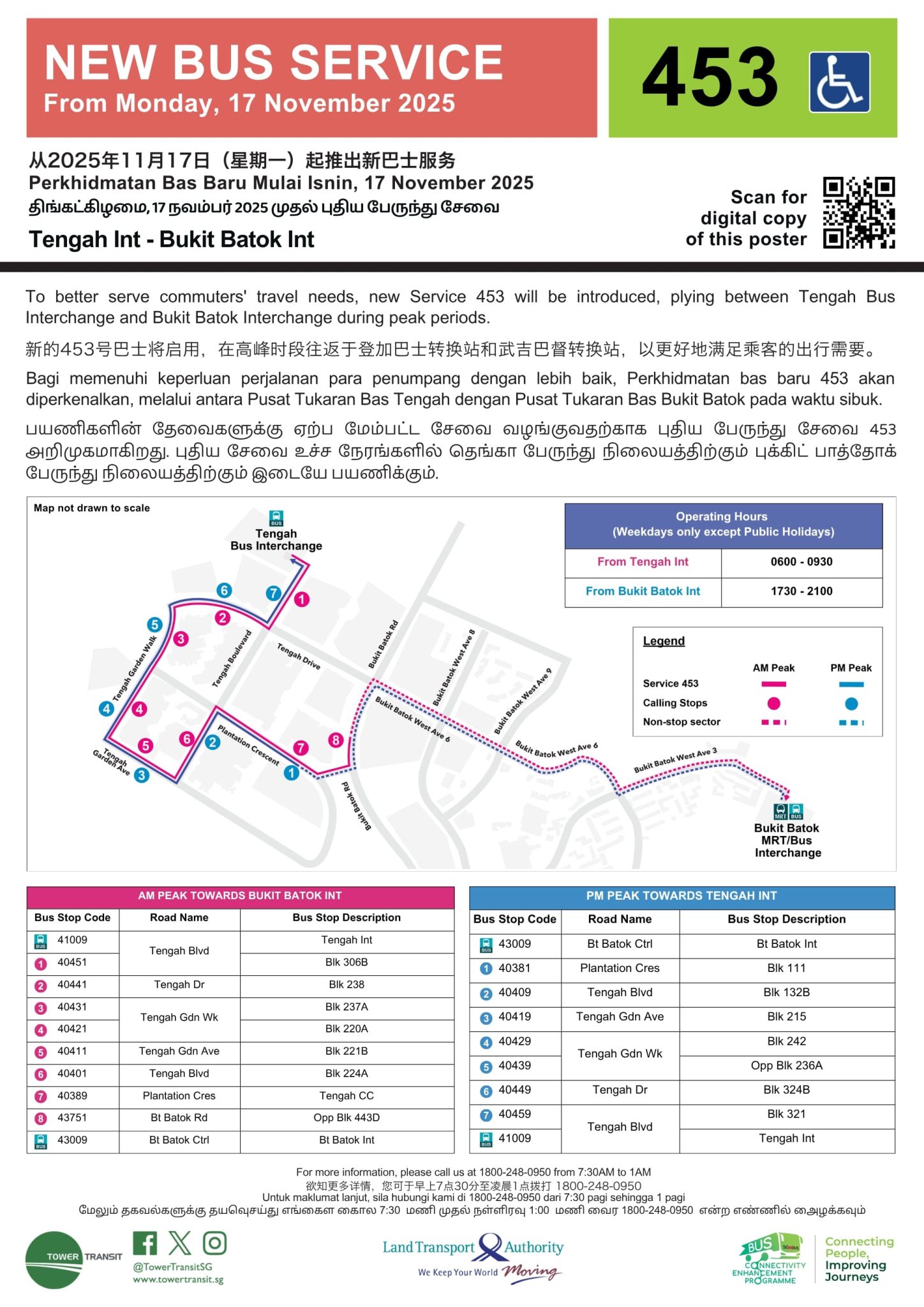From Monday, 17 November 2025, 3 new Limited-stop Peak Period Bus Services will be launched under the Land Transport Authority’s (LTA) Bus Connectivity Enhancement Programme (BCEP).