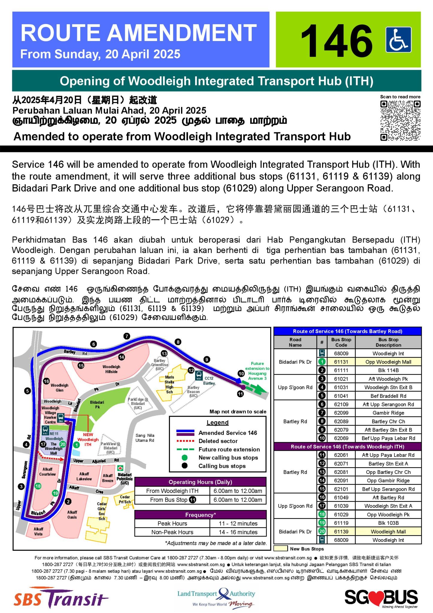 Bus Service 146 will be extended to operate from the new bus interchange, and new Bus Service 148 will be introduced on the same day.