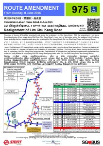 From Sunday 8 June 2025, Service 975 will be amended to ply an additional stretch of Old Choa Chu Kang Road, as well as the realigned Lim Chu Kang Road, skipping the closed portion of Lim Chu Kang Rd, Old Lim Chu Kang Rd & Lorong Rusuk.