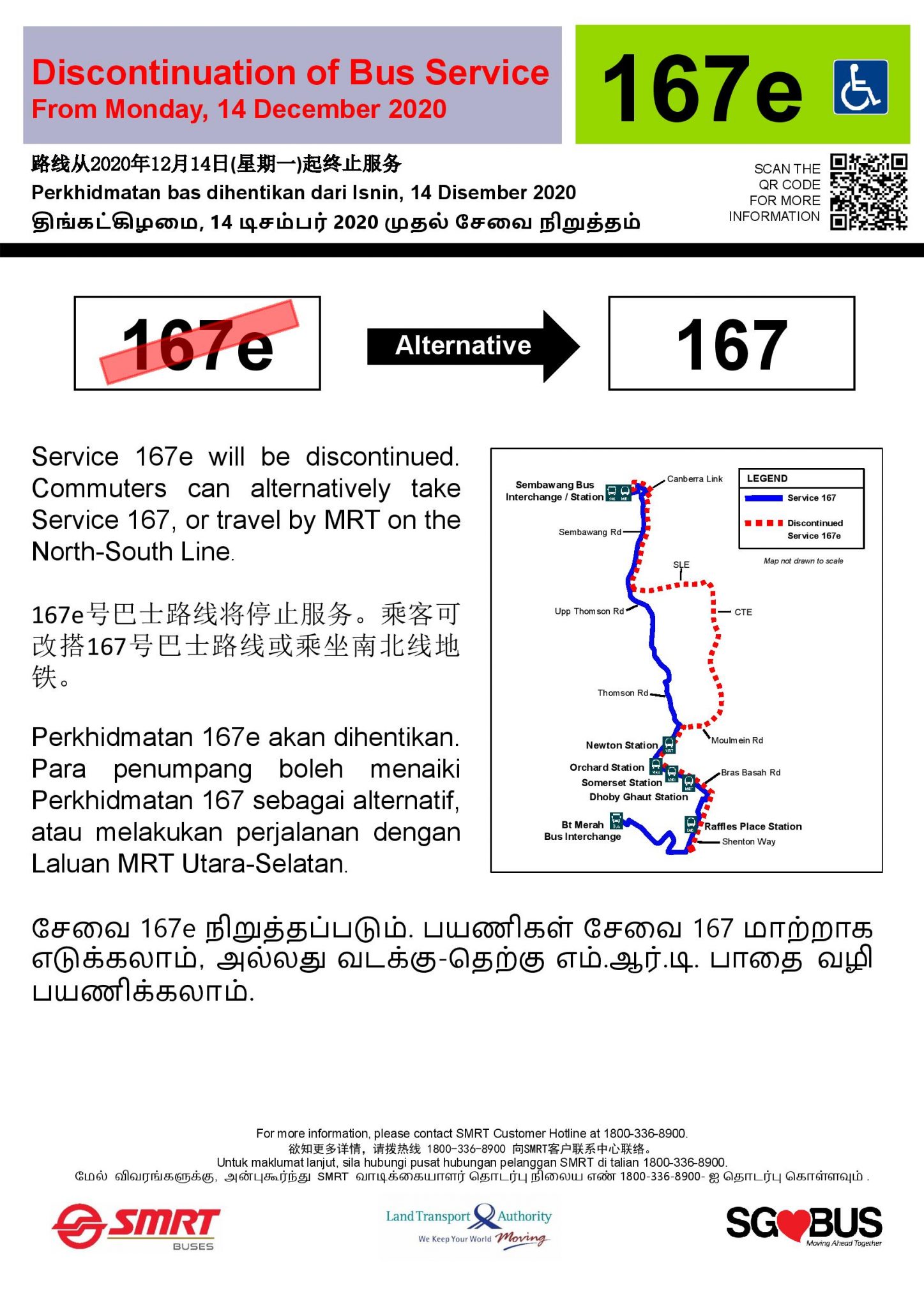 SMRT Express 167e will be withdrawn on Monday, 14 December 2020.