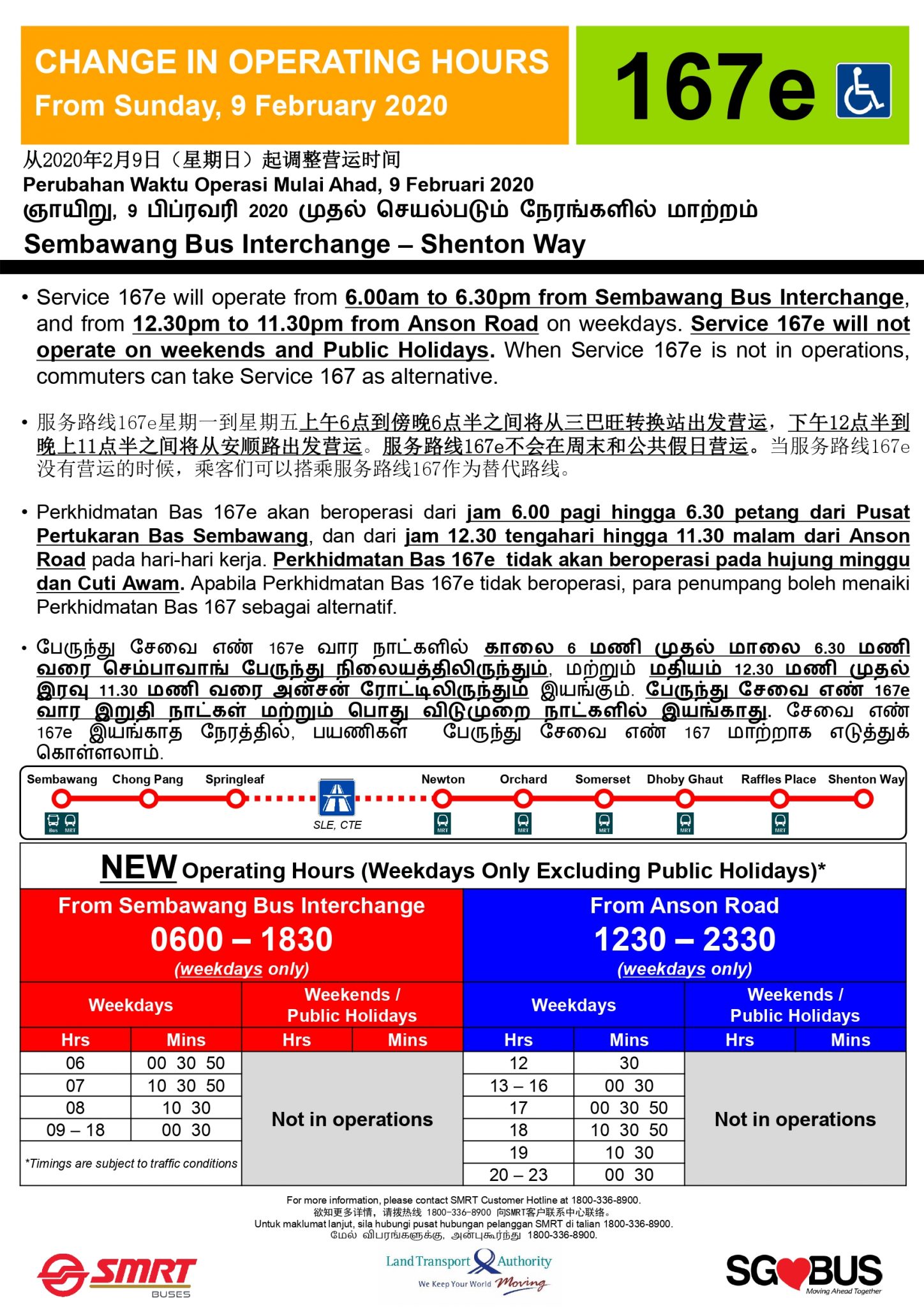 Bus Service 167e operated on weekdays only between Monday, 10 Feb 2020 & Friday, 11 Dec 2020.