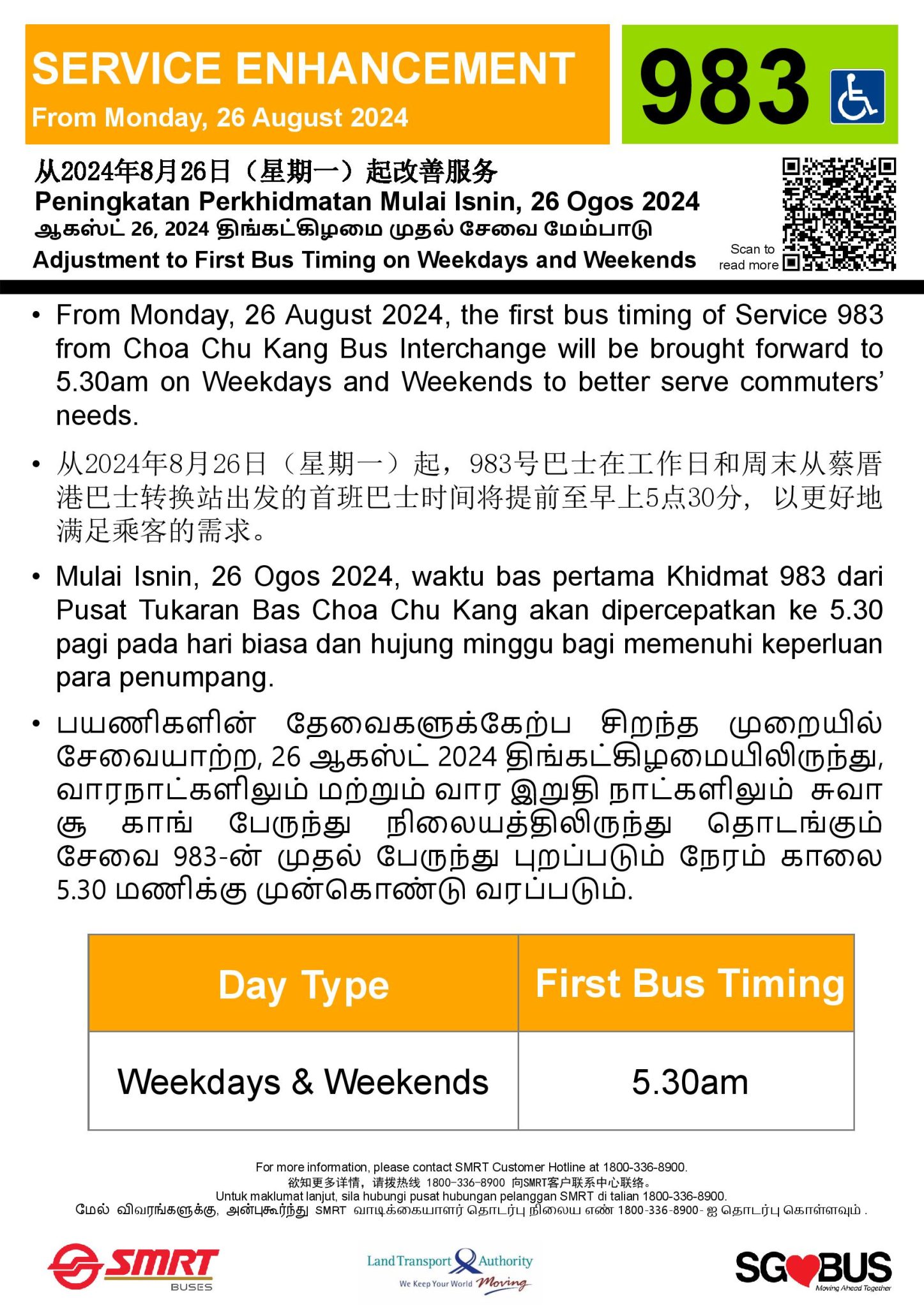 - Buses departing Ghim Moh Ter after 20:05 on Sundays & PHs terminated at Ghim Moh Ter between Sunday, 3 Dec 2023 & Sunday, 18 Aug 2024.