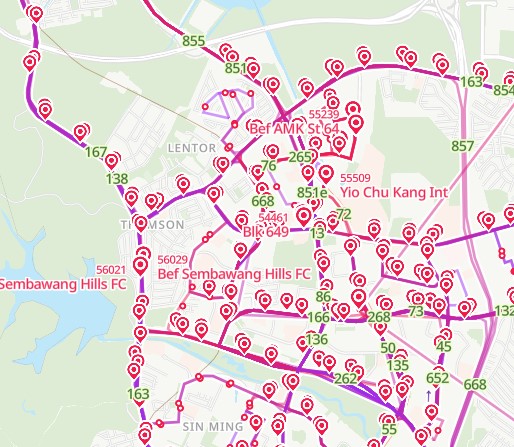 Ang Mo Kio is one of Singapore’s oldest public residential estates developed since the 1970s, located in the central region of the island. To cater to the increasing population in the developing public housing estate, SBS gradually introduced new trunk services and extended the routes of existing trunk services from nearby bus termini in Upp Thomson Rd, as well as providing several feeder services that connected the town’s neighbourhoods with the town centre.