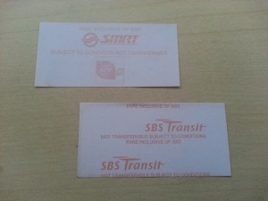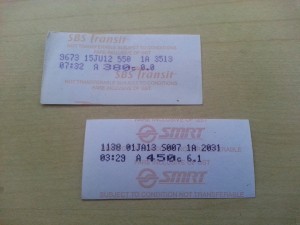 In Singapore, a bus ticket is issued after fare payment is made by cash. This is a small slip of paper printed with details such as the place of boarding and the amount of fare tendered. As proof of payment, cash-paying passengers are required to produce the ticket during fare inspection, and not having a ticket / holding on to an expired ticket can result in a $20 fine.