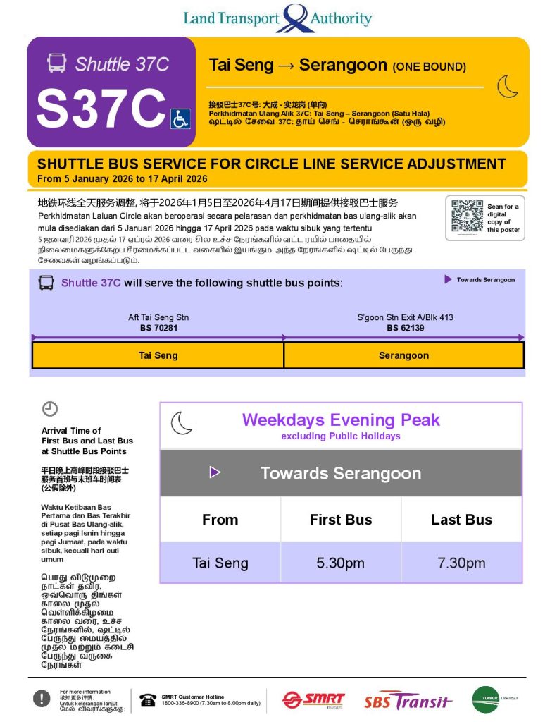 Shuttle 37C (Tai Seng > Serangoon) Poster for CCL Service Adjustment (Jan – Apr 2026) [1/2] Shuttle 37C (Tai Seng > Serangoon) Poster for CCL Service Adjustment (Jan – Apr 2026) [1/2] Shuttle 37C (Tai Seng > Serangoon) Poster for CCL Service Adjustment (Jan – Apr 2026) [1/2]