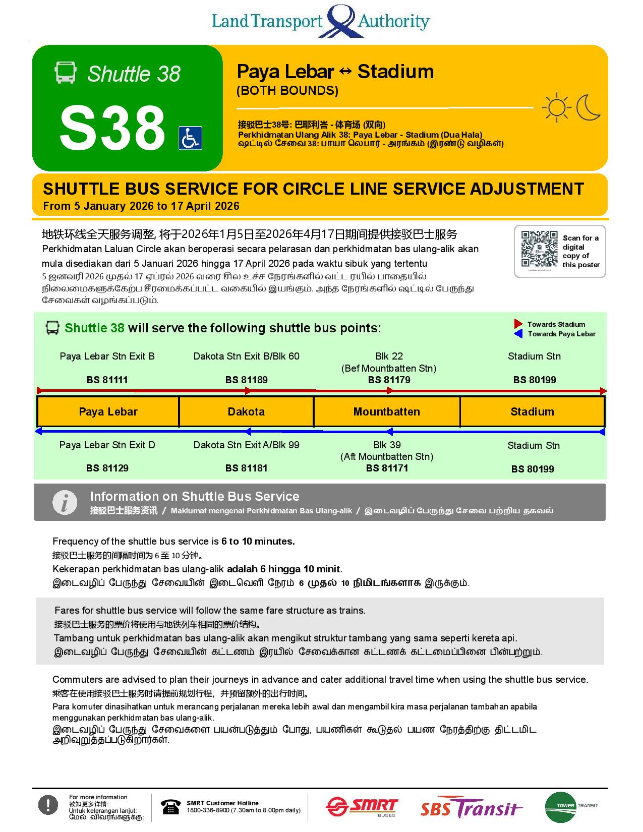 Shuttle 38 (Paya Lebar – Stadium) Poster for CCL Service Adjustment (Jan – Apr 2026) [2/2] Shuttle 38 (Paya Lebar – Stadium) Poster for CCL Service Adjustment (Jan – Apr 2026) [2/2] Shuttle 38 (Paya Lebar – Stadium) Poster for CCL Service Adjustment (Jan – Apr 2026) [2/2]