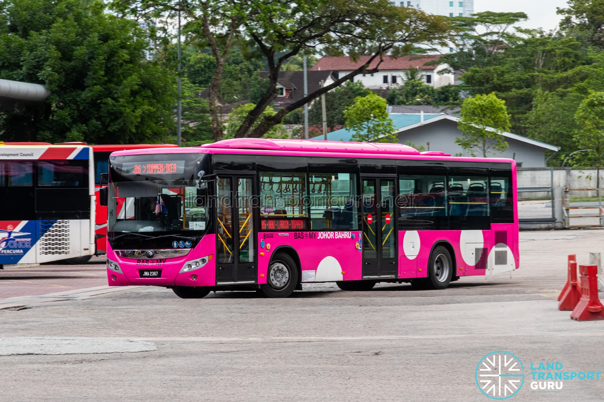 2025 (30 Sep): Introduced as a BAS.MY Johor Bahru service between B5 Johor Street Mall and Toppen Tebrau via Larkin Sentral.