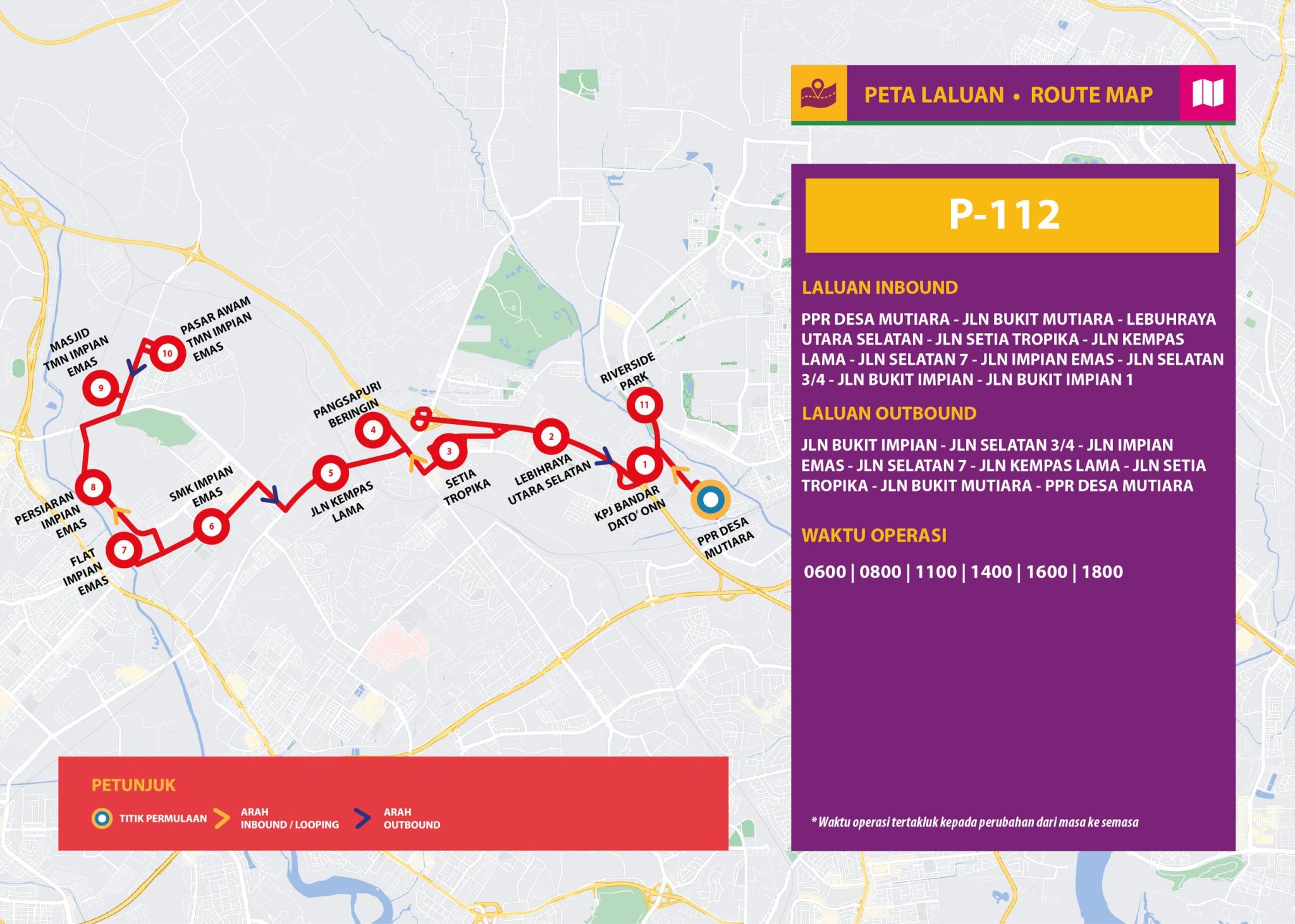 Bas Muafakat Johor Bus Service P112 is a Bas Muafakat Johor (BMJ) bus route operated by Causeway Link, plying as a loop service from RTBJ Kempas Utama to Skudai & Kg. Sinaran Baru.