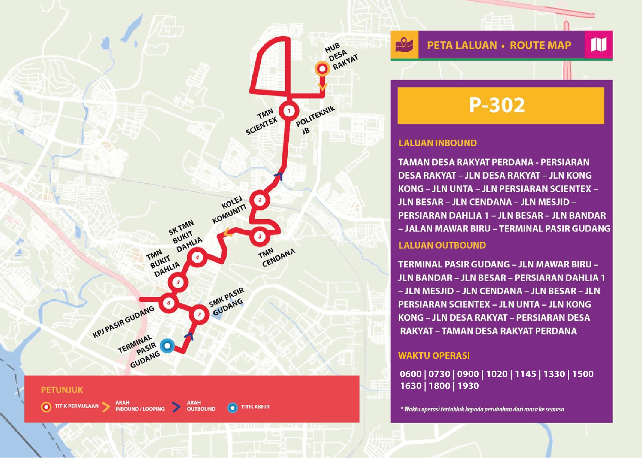 Bas Muafakat Johor P302 – Route Map (May 2025)