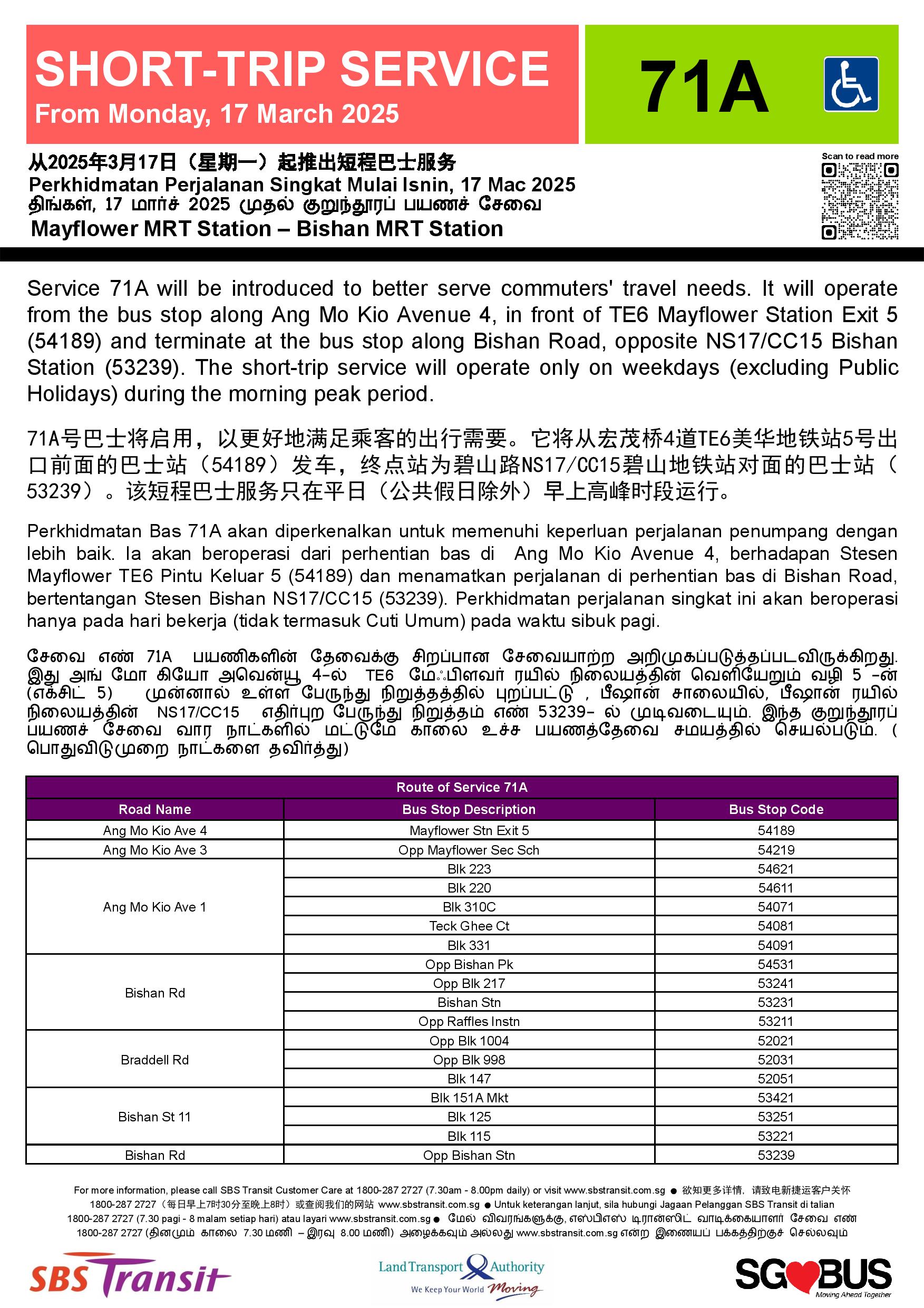 SBS Transit Poster for New Short Trip Service 71A SBS Transit Poster for New Short Trip Service 71A SBS Transit Poster for New Short Trip Service 71A