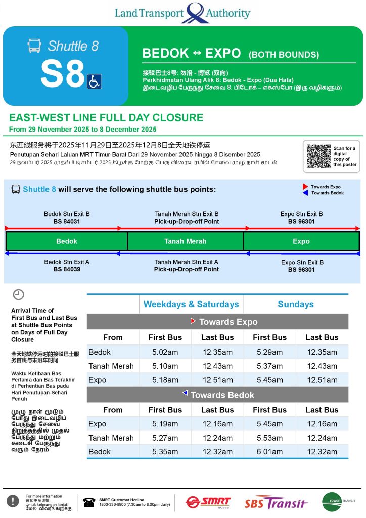 Shuttle 8 (Bedok – Expo) Poster for EWL Closure (Nov & Dec 2025) Shuttle 8 (Bedok – Expo) Poster for EWL Closure (Nov & Dec 2025) Shuttle 8 (Bedok – Expo) Poster for EWL Closure (Nov & Dec 2025)