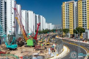 A large-diameter Earth Pressure Balance (EPB) Tunnel Boring Machine (TBM), measuring about 12 metres in diameter will be used to construct a single 4.3-kilometre-long tunnel with two tracks in it. The tunnel will be constructed at an approximate depth of 25 metres below ground. LTA and the contractor will closely monitor the works to ensure that they are carried out safely and in a timely manner and minimise the impact to the nearby stakeholders.