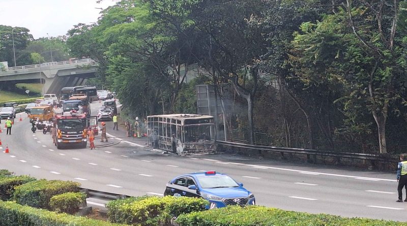 In a video circulating online, the Mercedes-Benz Citaro bus was seen engulfed in flames on the road shoulder of PIE near exit 24. Thick black smoke can be seen rising as the fire was seen spread across the entire bus.