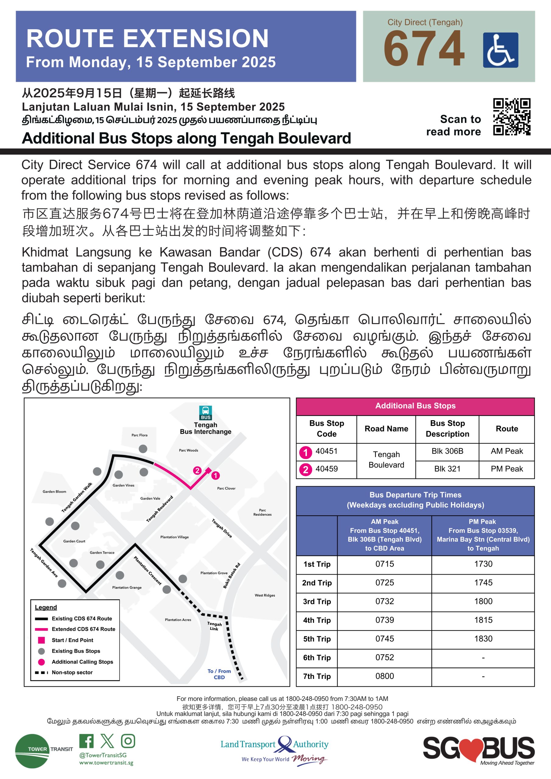 Tower Transit Poster for Route Extension & Additional Trips for City Direct 674