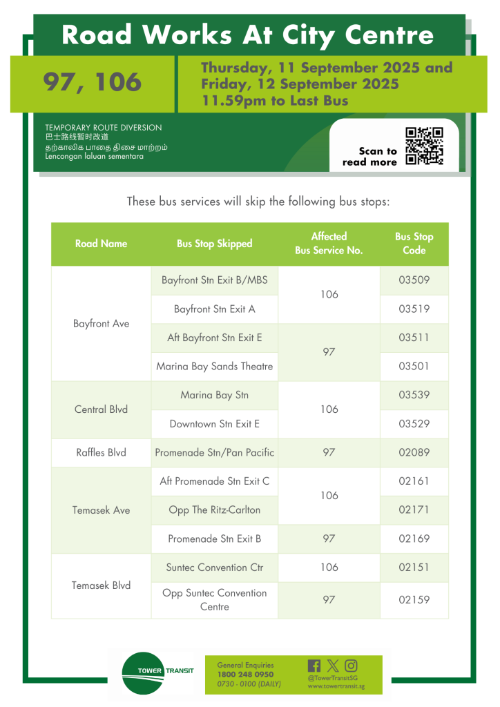 Tower Transit Temporary Route Diversion Poster for Road Works at City Centre (11 & 12 Sep 2025) Tower Transit Temporary Route Diversion Poster for Road Works at City Centre (11 & 12 Sep 2025) Tower Transit Temporary Route Diversion Poster for Road Works at City Centre (11 & 12 Sep 2025)