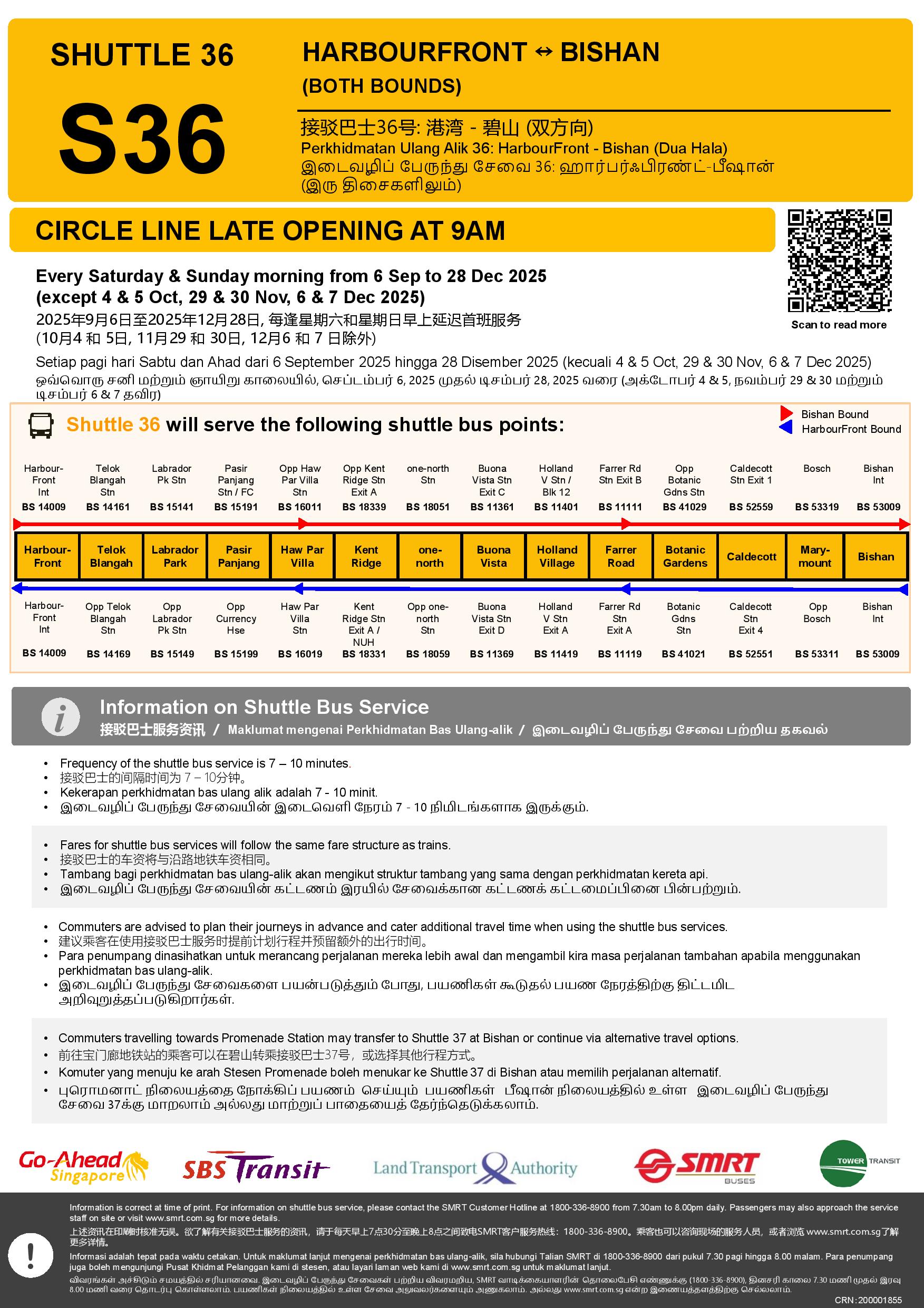 Shuttle 36 (HarbourFront – Bishan) Poster for CCL Late Opening (Sep – Dec 2025) Shuttle 36 (HarbourFront – Bishan) Poster for CCL Late Opening (Sep – Dec 2025) Shuttle 36 (HarbourFront – Bishan) Poster for CCL Late Opening (Sep – Dec 2025)
