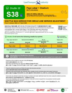 Although modified CCL train operations and tunnel maintenance works commence on Saturday, 17 January 2026, Shuttle 38 will begin operations earlier on Monday, 5 January 2026, to allow commuters to familiarise themselves with the shuttle bus arrangements.