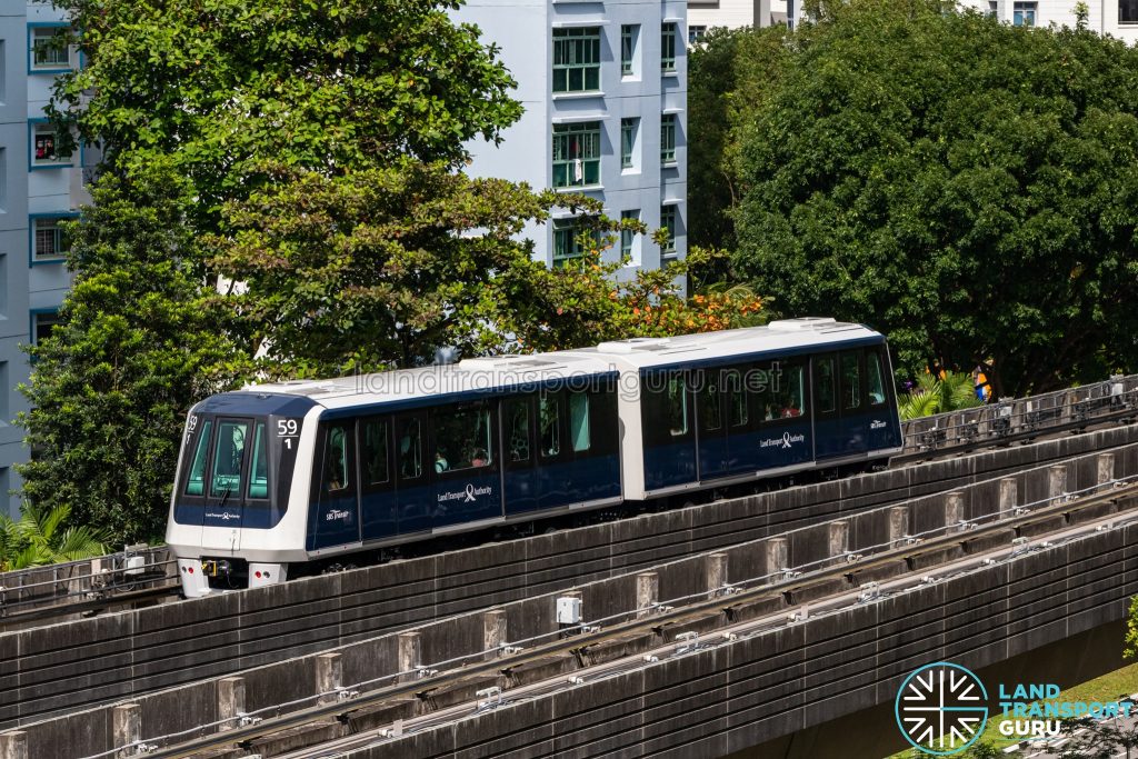 Mitsubishi Crystal Mover (C810D) train, operating on the Punggol East loop