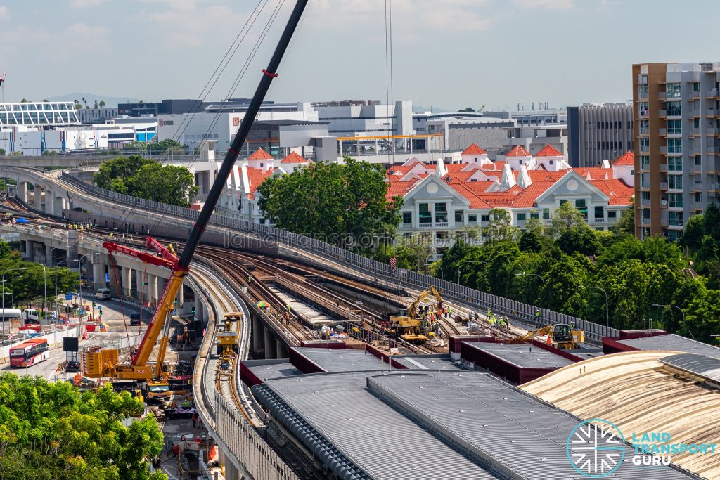Trackworks connecting Tanah Merah westbound viaduct with mainline (Dec 2025) Trackworks connecting Tanah Merah westbound viaduct with mainline (Dec 2025) Trackworks connecting Tanah Merah westbound viaduct with mainline (Dec 2025)