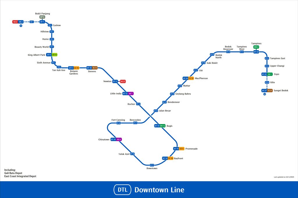 - 2025 (06 Jan): DTL Stage 2 Extension to Sungei Kadut (DE2 Station) via intermediate DE1 Station announced by the Land Transport Authority