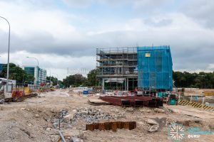 The station was initially targeted for completion by 2024. In 2022, its completion was pushed back to 2025, and later at COS 2024, was further pushed back to 2026. At COS 2025, the extension was projected to open in the 2nd Half of 2026. Delays were attributed to the COVID-19 pandemic and unspecified challenges involving tunnelling near existing critical infrastructure.